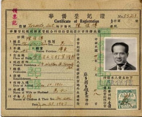 Certificate of Registration under the 1923 Chinese Immigration Act