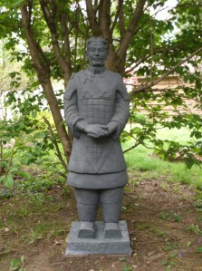 My younger grand-daughter, Nora while shopping with her maternal grandmother, saw a terracotta warrior replica she thought looked like me. I eventually bought and repaired it (was damaged and being sold “as is”). It now sits in our backyard under our Japanese lilac tree.